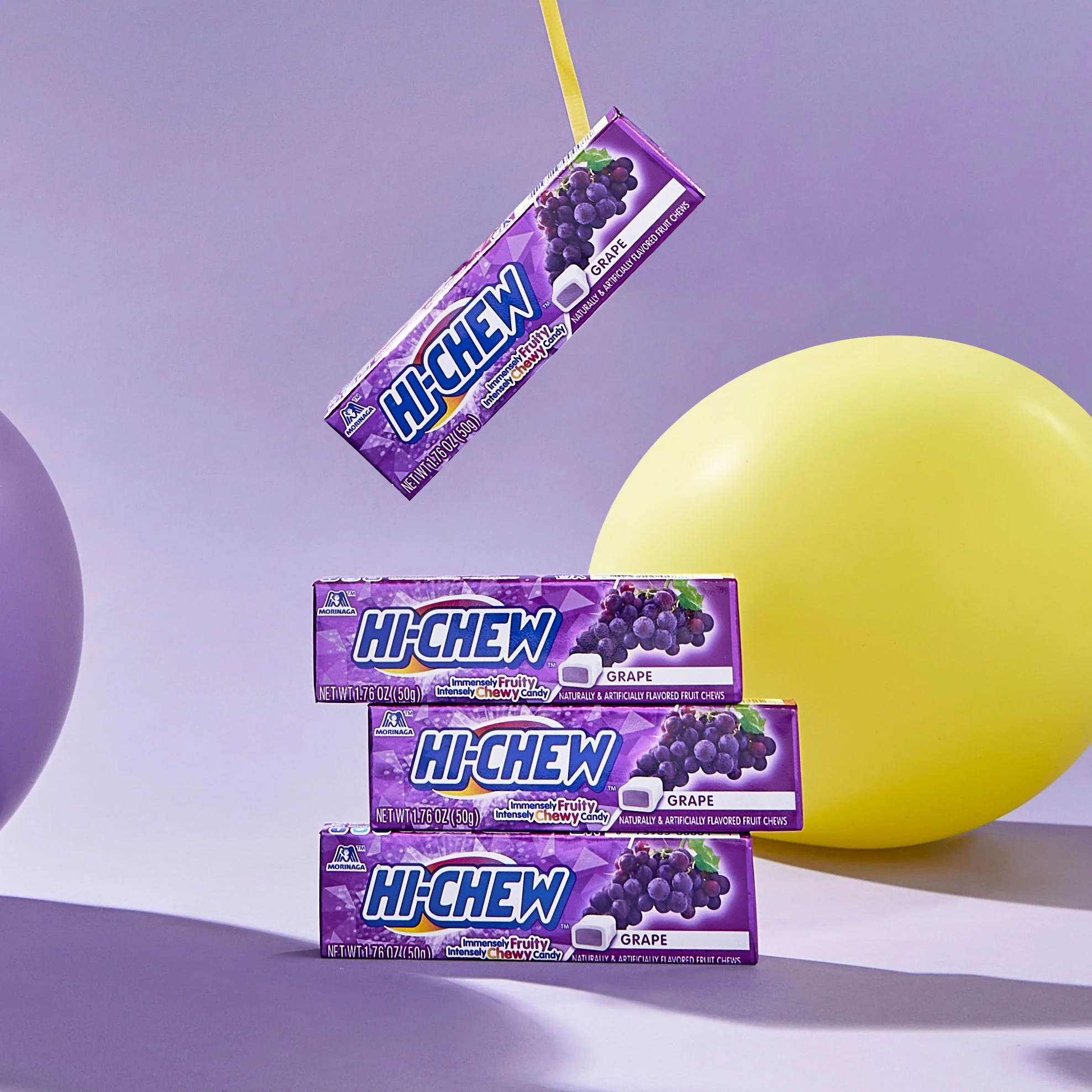 What are 'CHEW waiting for? Grab a Grape Stick! HI-CHEW® Grape is made with real fruity flavor that tastes just as juicy as the real thing.