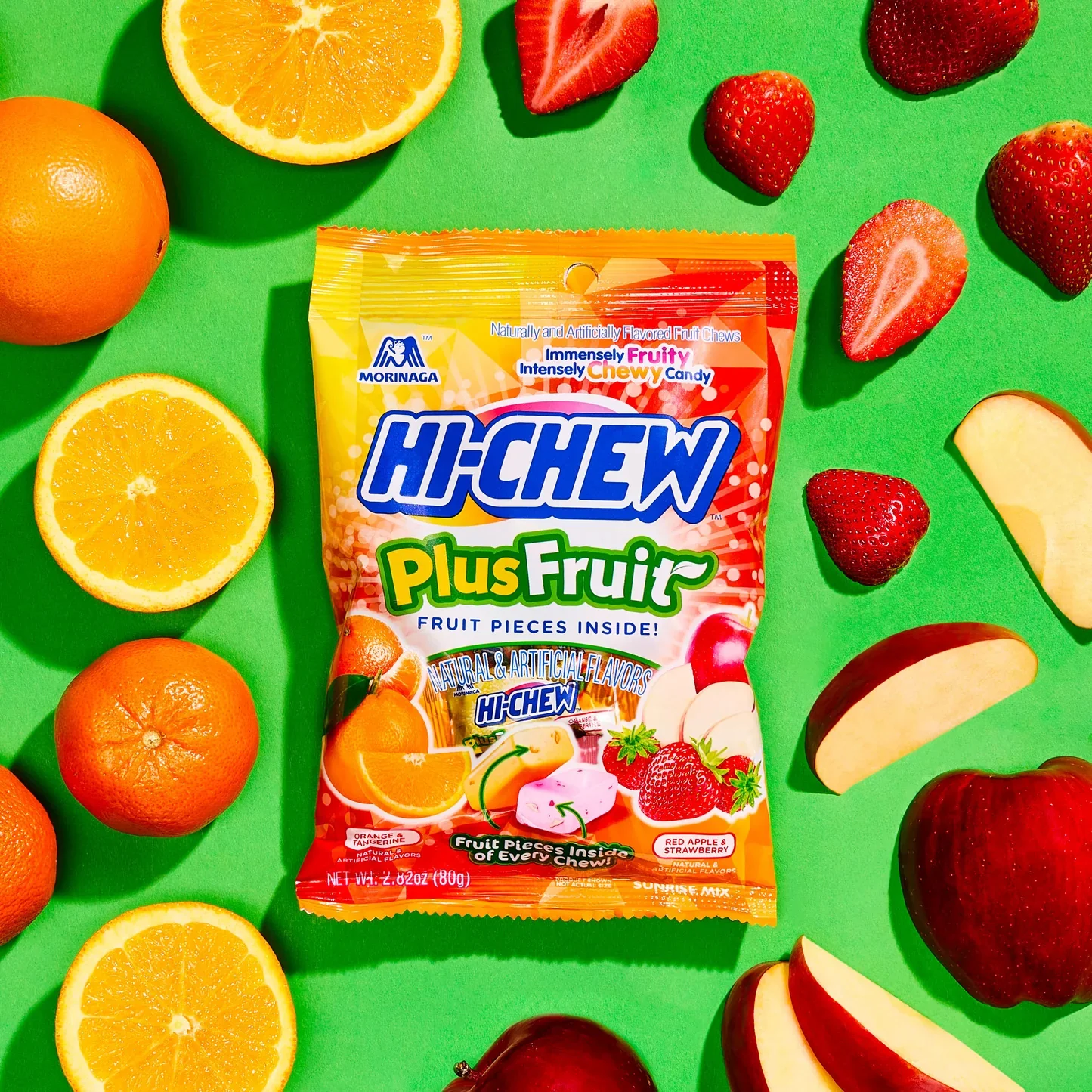 Treat your taste buds to two totally unique flavor combinations! A mouthwatering medley of Orange & Tangerine and Red Apple & Strawberry CHEWs, made with real fruit pieces.